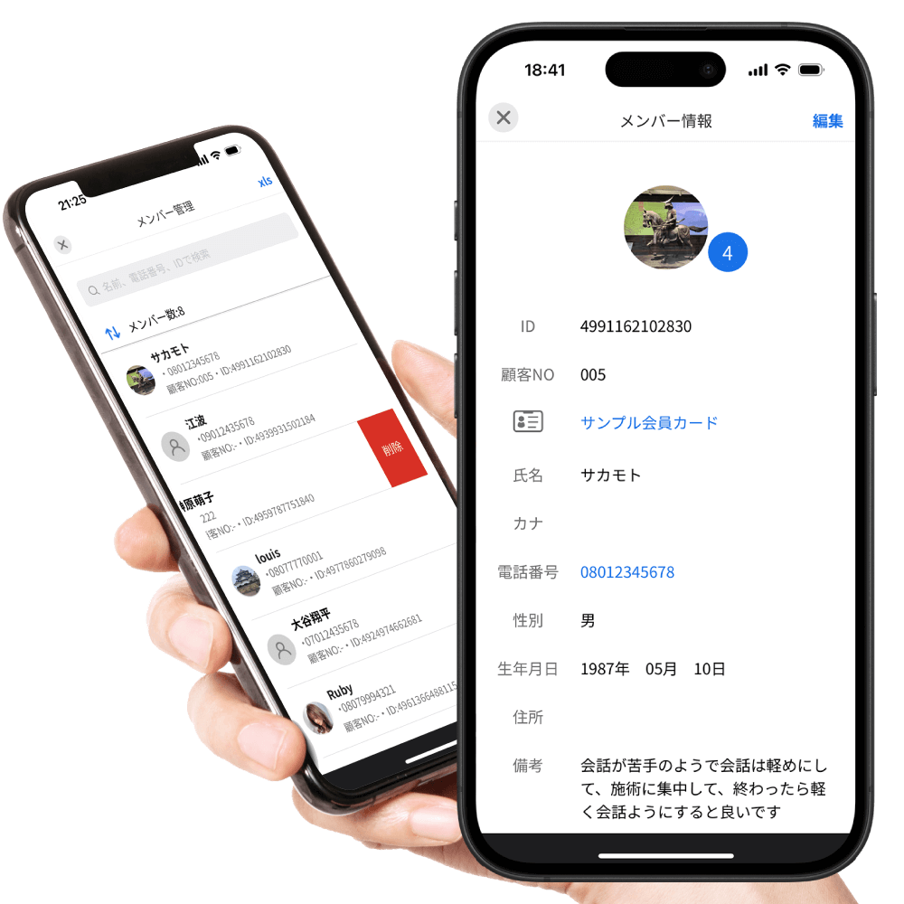 アプリ独自のリーダー機能で、メンバーズカードの管理や来店日時・施術メニューなどの履歴、クーポン利用状況までを簡単に管理できます。