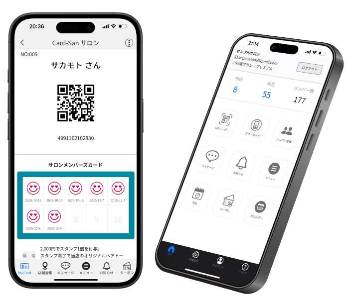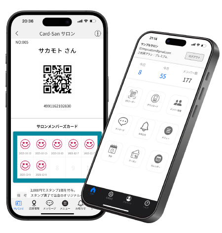 Card-Sanでは、多店舗契約は行っていません。理由は、店舗ごとに発信する情報やメニュー、雰囲気、顧客層が大きく異なるためです。フランチャイズのように、全店舗が同じサービス内容・価格・情報発信を行う場合は、多店舗用アプリのほうが適しています。しかし、一般的な美容院・整体院・サロンのように、店舗ごとに強みや個性がある業態では、1店舗ごとに専用アプリを持つほうが効果が高いと考えています。そのためCard-Sanでは、各店舗が自分たちに合った情報を自由に発信できるよう、1店舗=1アプリの形を採用しています。