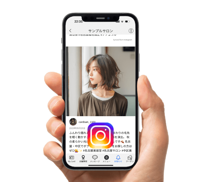 お店の最新情報を発信。通常の投稿はもちろん、インスタグラム連携機能を使えば、投稿内容をそのままアプリに表示できるので、運用の手間も減らせます。