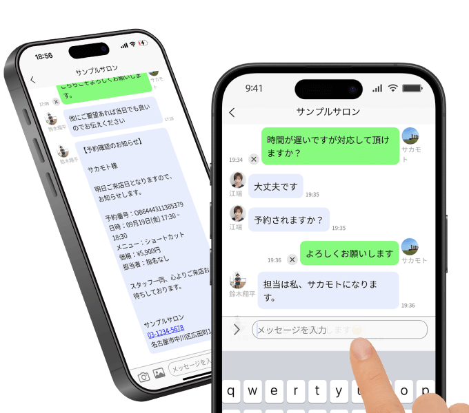 店舗専用のチャットを使えば電話対応の時間を大幅に軽減。 個別のメッセージはもちろん、予約確認やサンキューメッセージもチャットから配信できます。